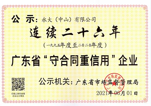 *连续二十六年获广东省市场监督管理局颁发“广东省守合同重信用”企业